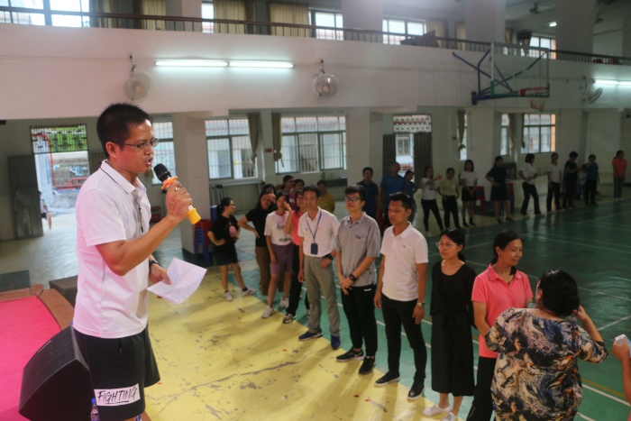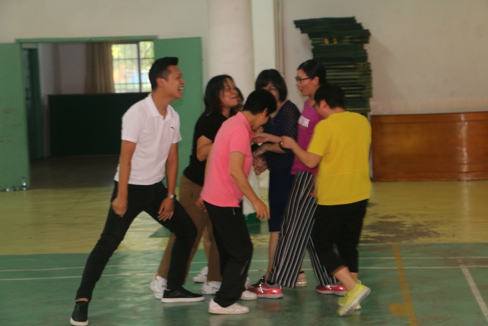 開(kāi)學(xué)一個(gè)月,大家忙忙碌碌,每天在各自的崗位上努力奮斗,拼搏。活動(dòng)的第三個(gè)環(huán)節(jié)讓全體教職工能夠放松心情,開(kāi)心游戲。第一個(gè)游戲以年級(jí)組為單位玩“移形換位”的游戲,六個(gè)年級(jí)組同時(shí)進(jìn)行,看那個(gè)年級(jí)組配合的最好。第二個(gè)游戲是“破冰游戲”,目的是讓所有人都能放下顧慮,融合共處。大家玩游戲非常開(kāi)心,放下工作,珍惜這美好的短暫的屬于自己的時(shí)間。