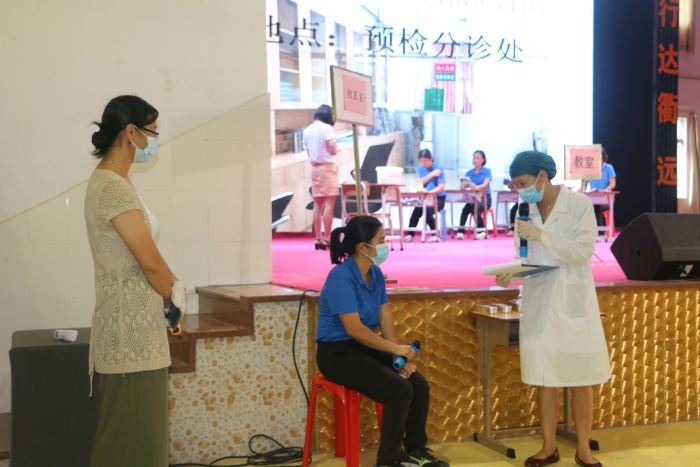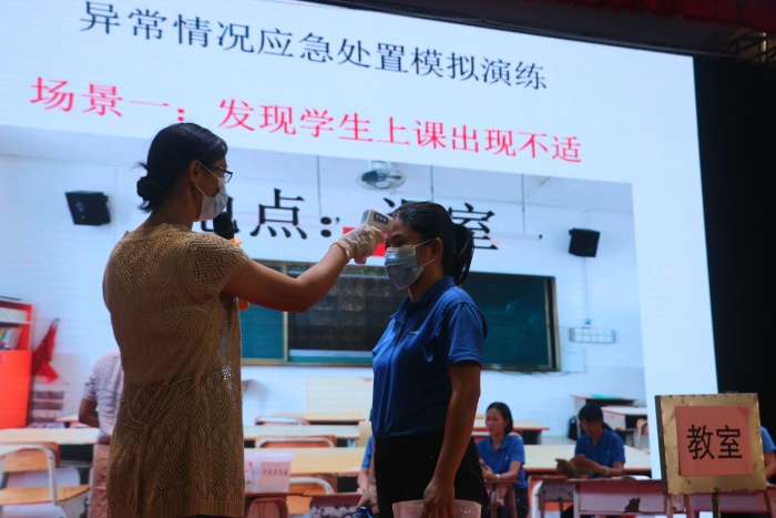 上午10點(diǎn),南朗云衢小學(xué)全體教職員工集中在學(xué)校藝體中心。首先阮連鳳副組長(zhǎng)詳細(xì)地講解了五個(gè)場(chǎng)景的操作要點(diǎn):一是師生入校體溫檢測(cè)場(chǎng)景;二是師生進(jìn)入學(xué)校后人員分流場(chǎng)景;三是教學(xué)區(qū)作息場(chǎng)景; 四是學(xué)生用餐場(chǎng)景;五是出現(xiàn)學(xué)生異常情況的應(yīng)急處置。