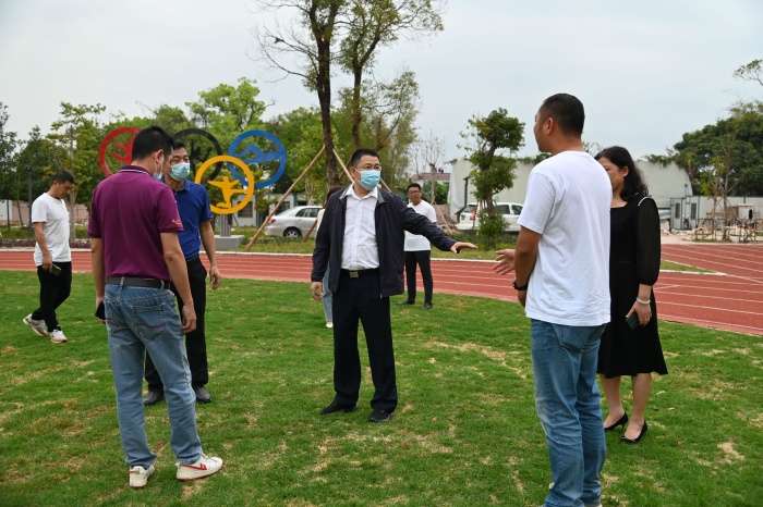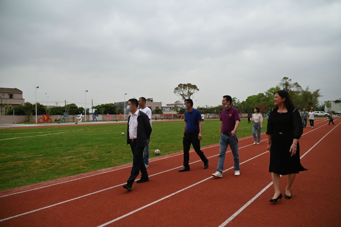 謝主任一行懷著對(duì)學(xué)校的關(guān)切之情,對(duì)該校校園環(huán)境和學(xué)校建設(shè)進(jìn)行了視察。調(diào)研組首先實(shí)地察看學(xué)校足球場(chǎng),親自感受足球場(chǎng)的草坪鋪設(shè)情況,隨后查看了圖書(shū)館內(nèi)外環(huán)境及室內(nèi)運(yùn)動(dòng)場(chǎng)和學(xué)校食堂廚房的硬件設(shè)施。謝主任指出,學(xué)校必須在校園綠化建設(shè)上下功夫,努力創(chuàng)建高雅校園,發(fā)揮校園環(huán)境對(duì)學(xué)生教育的熏陶和啟迪作用。在察看室內(nèi)運(yùn)動(dòng)場(chǎng)時(shí),謝主任不僅關(guān)注消防設(shè)施,還結(jié)合南方雨季較多的特點(diǎn),針對(duì)室內(nèi)運(yùn)動(dòng)場(chǎng)外的遮雨棚搭建對(duì)施工方提出了各種可行方案。在察看廚房時(shí),謝主任重點(diǎn)強(qiáng)調(diào)要做好防鼠防蟑螂的措施,時(shí)刻把師生的健康安全擺在第一位。