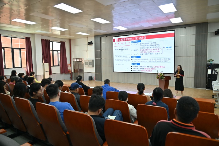 接著,湯璇萍副主任給全體老師進(jìn)行了信息2.0的培訓(xùn)。她為全體教師介紹了信息2.0項(xiàng)目的背景、評(píng)價(jià)指標(biāo)、評(píng)價(jià)細(xì)則和規(guī)劃,指出信息2.0工程要覆蓋所有師生,著力提高教師信息化技術(shù)水平和信息化素養(yǎng)。她著重講解了如何學(xué)習(xí)信息2.0項(xiàng)目,從學(xué)校、科組到個(gè)人,都做了簡(jiǎn)單明了的指示,為全體教師開(kāi)展信息技術(shù)能力提升2.0項(xiàng)目的學(xué)習(xí)指明了清晰的方向。