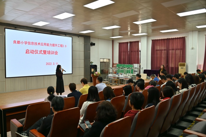 為全面貫徹落實(shí)“關(guān)于實(shí)施中小學(xué)教師信息技術(shù)應(yīng)用能力提升工程2.0”的有關(guān)精神,推進(jìn)我校信息技術(shù)與教育教學(xué)深度融合,促進(jìn)教師應(yīng)用信息技術(shù)打造高質(zhì)高效課堂,提高教學(xué)質(zhì)量,3月11日,在這個(gè)春暖花開(kāi)的日子里,良都小學(xué)組織全體教師召開(kāi)了信息技術(shù)應(yīng)用能力提升工程2.0啟動(dòng)儀式暨培訓(xùn)會(huì)。