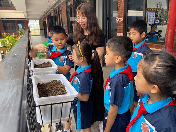5月25日,復(fù)學(xué)第一天,所有班主任帶領(lǐng)同學(xué)們提前準(zhǔn)備植物小苗或植物種子進(jìn)行種植活動。在植物成長過程中,她們及時引導(dǎo)同學(xué)們觀察、照顧小植物,并用各種形式記錄植物的成長過程。