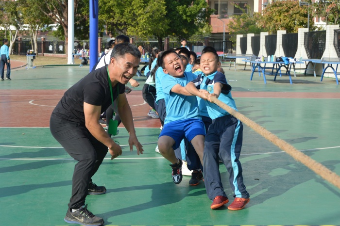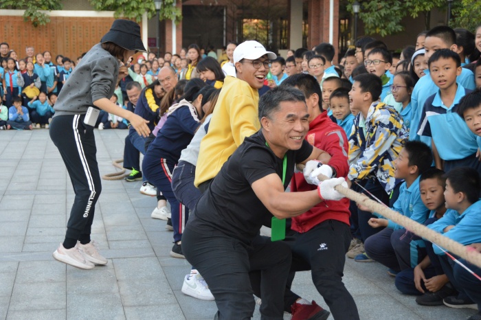 下午的趣味拔河比賽將這次體育節(jié)推向高潮,整個校園里吶喊聲、掌聲、笑聲、獲勝者的歡呼聲此起彼伏。?老師們也積極參與,以年級組為單位分別展開對抗,一眼望去每一組都顯得雄心勃勃、斗志昂揚。當比賽的哨聲一響,賽場上的老師們齊聲喊著“一二,一二”,雙手緊握長繩,憋足了勁拼命往后拉,賽場旁邊的老師們富有節(jié)奏的吶喊聲、加油聲充斥在比賽場地上。夕陽西下,運動會在歡呼聲中落下了帷幕。