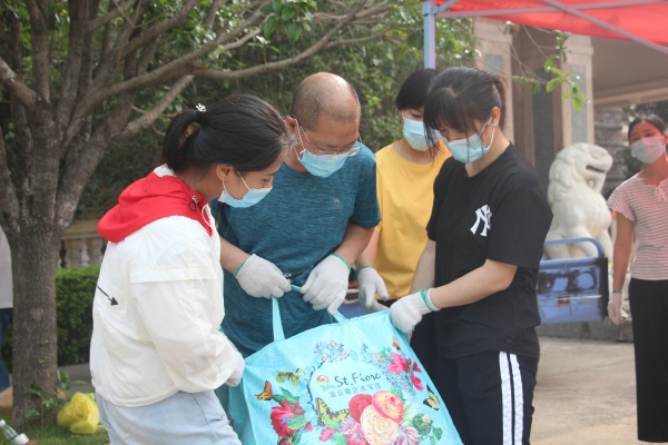 5月13日上午8點,教學(xué)區(qū)沒有課的老師和生活老師老師、還有安保人員準(zhǔn)時到位,等待學(xué)生家長運送行李的到來。從學(xué)校門口到物資制定交接點,都規(guī)劃好了統(tǒng)一的路線,嚴(yán)格規(guī)定了人員之間的距離。從門口處消毒,到學(xué)生行李接收等都做了具體細(xì)致安排。家長按照規(guī)定時間陸續(xù)到來,送下行李后迅速離開,由班級相關(guān)老師負(fù)責(zé)接收,貼上標(biāo)有班級、姓名、宿舍號和床位號的標(biāo)簽,由專人對每個學(xué)生的行李進(jìn)行消毒處理,再搬運到指定消過毒的運輸車上,安全把行李到達(dá)宿舍,由責(zé)任教師將學(xué)生行李安排到指定床位。