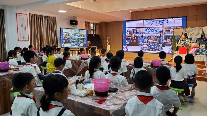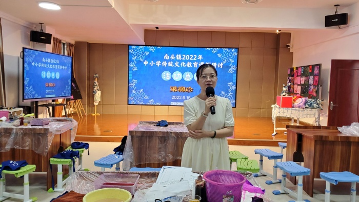 為了進一步貫徹落實教育部《完善中華優(yōu)秀傳統(tǒng)文化教育指導綱要》和 《中山市教育和體育局關于落實<中山市傳承發(fā)展中華優(yōu)秀文化實施方案>工作方案》的要求,加強南頭鎮(zhèn)傳統(tǒng)文化傳承與發(fā)展工作,6月15日下午,南頭鎮(zhèn)2022年中小學傳統(tǒng)文化教育課例研討活動在華暉學校舉行。參加本次活動的有南頭鎮(zhèn)教育和體育事務中心教研員梁柳珍老師,南頭鎮(zhèn)傳統(tǒng)文化科組中心組組長徐曉娟老師,以及各學校傳統(tǒng)文化教育負責人、鎮(zhèn)傳統(tǒng)文化工作室成員代表。本次活動主題為:“邂逅扎染之美,傳承非遺文化”。