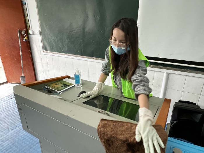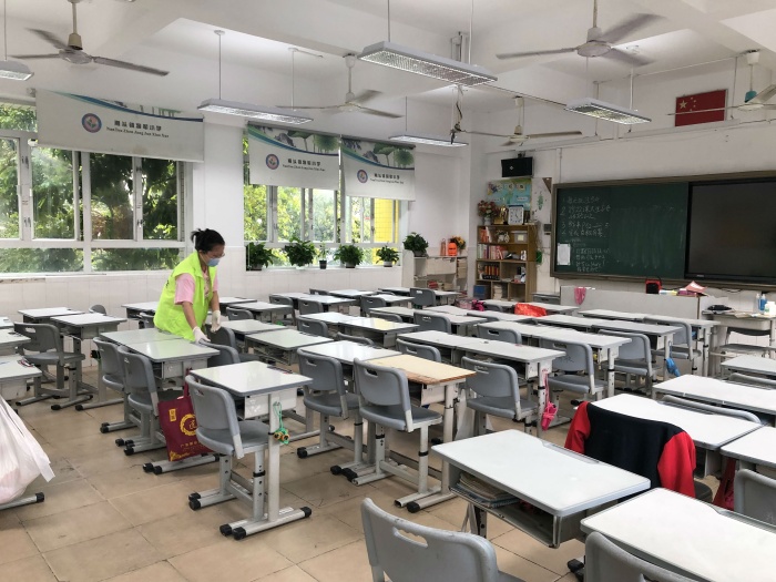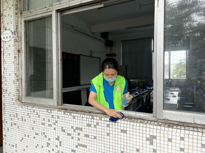 全體教師志愿者利用周末時(shí)間,一早回到學(xué)校,對(duì)各區(qū)域進(jìn)行集中整治清理。志愿者們對(duì)校門口周邊地帶、校園綠化帶、樓梯、走廊、教室、廁所、辦公室、實(shí)驗(yàn)室、器材室、圖書室等場(chǎng)所進(jìn)行認(rèn)真打掃清理,細(xì)致消毒,確保校園內(nèi)無衛(wèi)生死角,做到窗明幾凈,物品擺放整齊,無亂堆亂放現(xiàn)象。在勞動(dòng)過程中,全體教師志愿者熟練地進(jìn)行消毒水配制,擦?xí)?、擦窗臺(tái)、拖地,干得熱火朝天,充分體現(xiàn)了不怕苦、不怕臟的精神。經(jīng)過大家的共同努力,校園衛(wèi)生環(huán)境得到了進(jìn)一步的改善,整個(gè)校園面貌煥然一新。