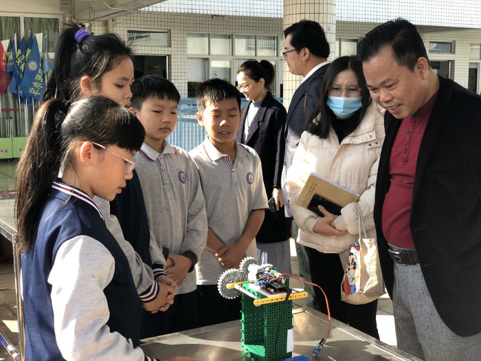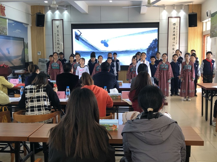 第二個環(huán)節(jié)是參觀學(xué)校特色展示。將軍小學(xué)的各類社團(tuán)精彩紛呈,有學(xué)校特色品牌的跆拳道社團(tuán)、趣味橫生的小牛頓科技創(chuàng)新社團(tuán)、變化無窮的剪紙社團(tuán)、傳承傳統(tǒng)文化的舞獅社團(tuán)等,將軍學(xué)子各展所長,自信大方地展示才華。緊接著,所有與會人員集中在大會議室,欣賞了百靈鳥般的合唱和賞心悅目的吟誦展演。精彩的特色展示給與會人員留下了深刻的印象。