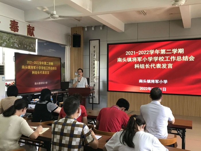 走過春的耕耘,迎來夏的豐盈,忙碌而又充實的2021—2022學(xué)年度工作圓滿畫上了句號。7月11日下午,南頭鎮(zhèn)將軍小學(xué)2021-2022學(xué)年度第二學(xué)期工作總結(jié)會議在學(xué)校會議室召開。本次會議由胡映芬校長主持,全體教職工參加了會議。