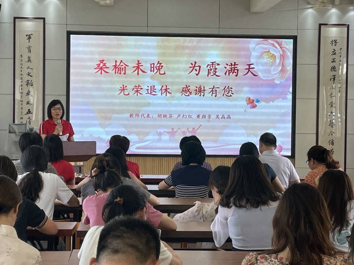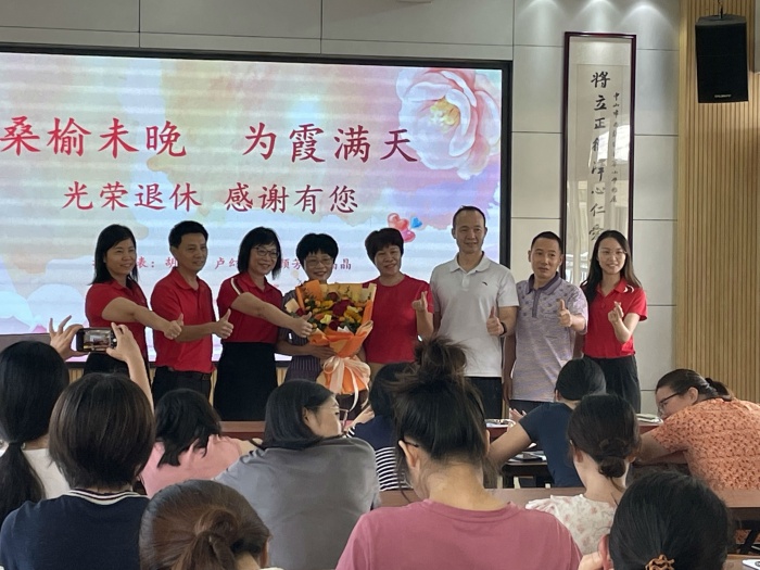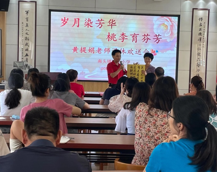 杏壇耕耘寫春秋,桃李芬芳書日月。為感謝對(duì)南頭鎮(zhèn)教育工作作出貢獻(xiàn)的退休教師黃提娟,2022年7月8日上午,南頭鎮(zhèn)將軍小學(xué)教師齊聚一堂,在學(xué)校會(huì)議室為黃提娟老師舉辦了簡單、溫馨的退休歡送會(huì)。