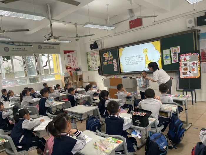 接著,將軍小學(xué)江智老師為大家?guī)怼豆R,笑哈哈》。她根據(jù)一年級(jí)學(xué)生天真燦漫的年齡特征,利用有趣的繪本故事《獅子照哈哈鏡》導(dǎo)入,哈哈鏡不但是學(xué)生熟悉的物體,更由于它能使鏡中人物“變形”而吸引了學(xué)生的注意力。江老師在整個(gè)課堂中,將有趣的繪本學(xué)習(xí)和哈哈鏡游戲靈活貫穿其中,如行云流水,一氣呵成。課堂以哈哈鏡的笑聲開始,又以打開折疊畫后發(fā)現(xiàn)了“哈哈鏡”的開心一笑為本節(jié)課畫上了完美的句號(hào)。