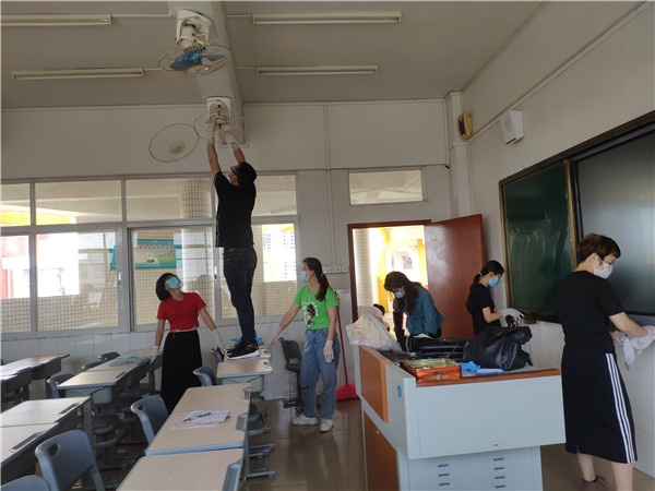 2020年的五一勞動(dòng)節(jié),升輝小學(xué)的部分家長(zhǎng)代表和全體老師們犧牲小假期,主動(dòng)參與學(xué)校開展的返學(xué)大清潔行動(dòng)中來,讓這個(gè)勞動(dòng)節(jié)更加有意義。家長(zhǎng)們?cè)诎嘀魅?、老師的指?dǎo)和分配下,分別對(duì)教室、教師辦公室、走廊、圍欄等處進(jìn)行清潔。校園內(nèi),教學(xué)樓上下,辦公室里外,隨處可見家長(zhǎng)忙碌的身影,有的抹桌子,有的拖地板,有的搬桌椅,有的擦風(fēng)扇、有的倒垃圾……家長(zhǎng)們臉上都掛滿汗珠,但卻快樂地忙碌著。