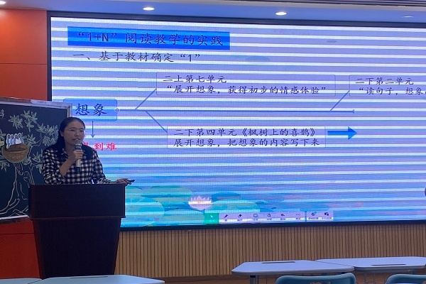 為進(jìn)一步落實(shí)“聚焦課堂,實(shí)現(xiàn)提質(zhì)”的教研目標(biāo),引導(dǎo)廣大教師關(guān)注并深入研究閱讀教學(xué),切實(shí)提升學(xué)生的語(yǔ)文素養(yǎng),提高小學(xué)語(yǔ)文閱讀教學(xué)的效益,3月22日南頭鎮(zhèn)升輝小學(xué)舉行南頭鎮(zhèn)小學(xué)語(yǔ)文閱讀教學(xué)專項(xiàng)研究工作室“低年級(jí)‘1+N’閱讀教學(xué)模式課例研討”活動(dòng),中山市南頭鎮(zhèn)督學(xué)、南頭鎮(zhèn)教育和體育事務(wù)中心教研員梁柳珍,南頭鎮(zhèn)鎮(zhèn)閱讀工作室的主持人余培淳、南頭鎮(zhèn)升輝小學(xué)校長(zhǎng)呂鑒添出席活動(dòng),南頭鎮(zhèn)小學(xué)語(yǔ)文閱讀教學(xué)專項(xiàng)研究工作室全體人員、南頭鎮(zhèn)升輝小學(xué)全體語(yǔ)文教師參加此次活動(dòng)。