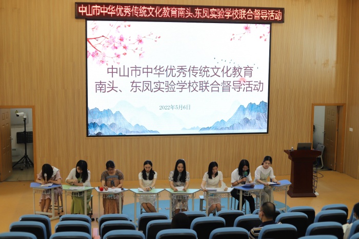 為進(jìn)一步弘揚(yáng)中華優(yōu)秀傳統(tǒng)文化,發(fā)揮傳統(tǒng)文化熏陶和教育功能,推動(dòng)中山市中華優(yōu)秀傳統(tǒng)文化教育質(zhì)量提升,5月6日上午,南頭東鳳聯(lián)校中華優(yōu)秀傳統(tǒng)文化督導(dǎo)教研活動(dòng)在南頭鎮(zhèn)中心小學(xué)舉行。參加本次活動(dòng)的有東鳳鎮(zhèn)教研員楊志向老師、南頭鎮(zhèn)教研員梁柳珍老師、三角鎮(zhèn)沙欄小學(xué)副校長(zhǎng)莫健彥、東鳳鎮(zhèn)中心小學(xué)德育處副主任祝軍榮、南頭鎮(zhèn)中心小學(xué)校長(zhǎng)衛(wèi)坤和副校長(zhǎng)郭建平以及中心小學(xué)全體語文老師。