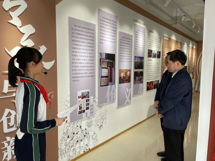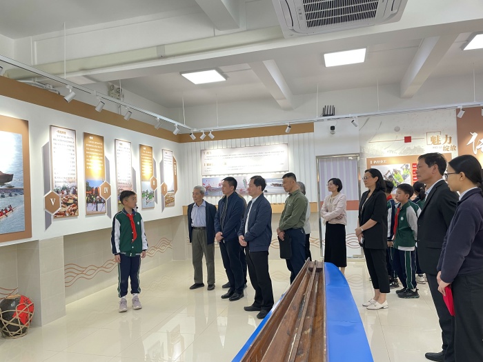 活動(dòng)中,小小紅領(lǐng)巾講解員和非遺項(xiàng)目代表性傳承人帶領(lǐng)大家入館參觀。中心小學(xué)講解員梁宏毅和楊思怡介紹到,鎮(zhèn)黨委、政府在美麗的濱江邊將此舊建筑改建為南頭鎮(zhèn)非遺展示館,主要用于展示南頭鎮(zhèn)五人飛艇賽、南頭慈善燈酒習(xí)俗兩項(xiàng)省級(jí)非物質(zhì)文化遺產(chǎn)項(xiàng)目。