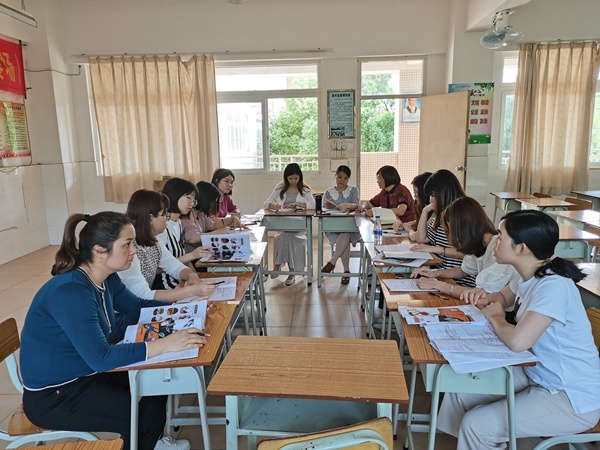 觀摩結(jié)束后,英語科組長梁志敏老師結(jié)合科組課題,帶領(lǐng)全體科組成員開展研討學(xué)習(xí)。每一位老師都各抒己見,分享了自己本節(jié)課對(duì)“圖片環(huán)游”英語閱讀教學(xué)模式的體會(huì)。在信息的交匯中,在思維的碰撞下,大家對(duì)課題有了更深的領(lǐng)悟和思考。最后,課題主持人馮小清老師指明了下一階段課題研究的方向,并提出在處理文本時(shí)要緊扣“文本主題”“文本內(nèi)容”“文本特征”“語言特點(diǎn)”和“作者觀點(diǎn)”等要求,力求不斷夯實(shí)提高英語課堂教學(xué)設(shè)計(jì)的效度。