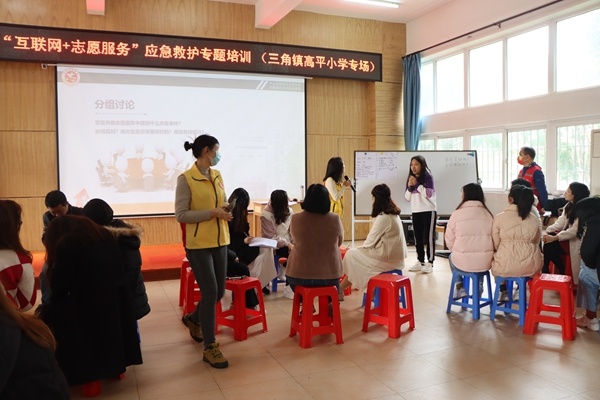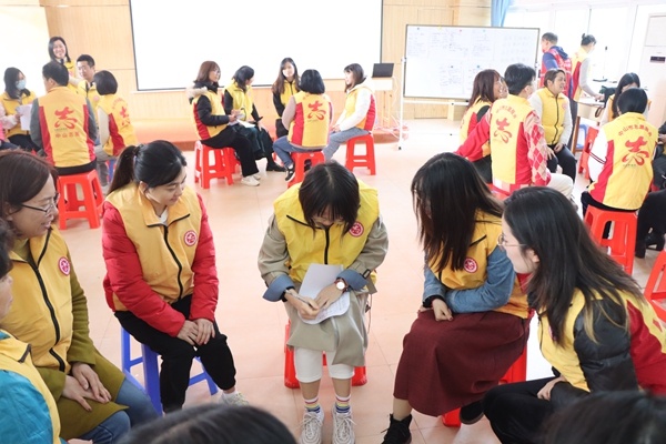 活動(dòng)開始,林玉玲老師開門見山道出開展志愿服務(wù)應(yīng)急能力提升培訓(xùn)的目的,接著組織學(xué)員進(jìn)行分組,要求在組內(nèi)限時(shí)收集組員信息,并分組匯報(bào)收集成果,以此為契機(jī),指導(dǎo)學(xué)員們?nèi)绾问占行畔?。隨后圍繞“志愿服務(wù)中遇到什么突發(fā)事件”的核心問題,從“如何應(yīng)對(duì)、哪方面是掌握得好、哪些是有待提升”等方面展開分組討論。各學(xué)員積極參與活動(dòng),紛紛上臺(tái)交流分享。最后,林老師以現(xiàn)場分享的事件為案例,通過生動(dòng)形象的講解,規(guī)范的指導(dǎo),把應(yīng)急救護(hù)知識(shí)傳授給教師們?,F(xiàn)場氣氛活躍、融洽,學(xué)員收獲滿滿。