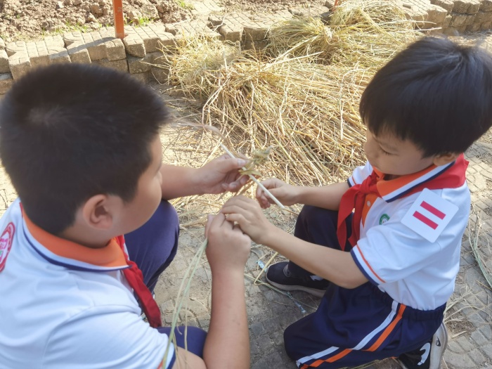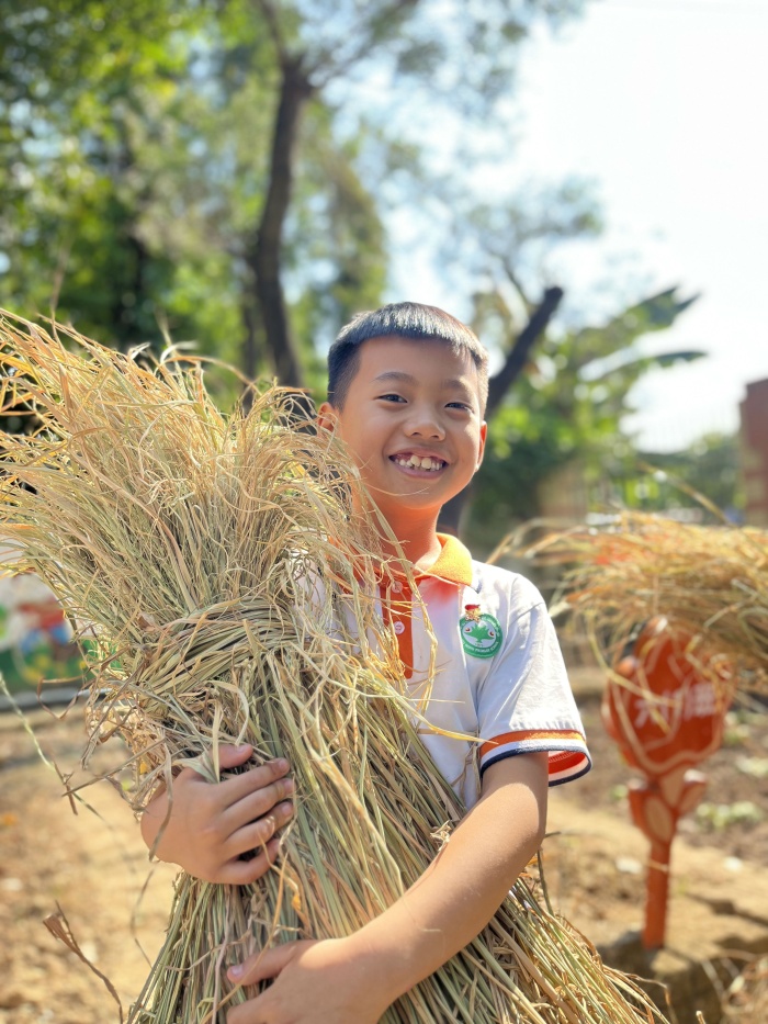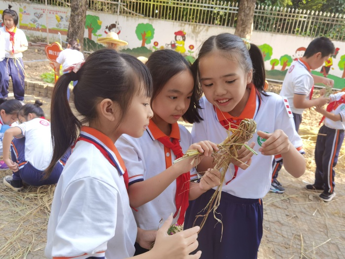 從今年春耕開始,懷著對稻谷的好奇之心,孩子們化身“小稻農(nóng)”,親身體驗農(nóng)耕文化,插秧、除雜草、收割,展開了一段孩子與水稻的故事。