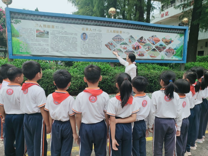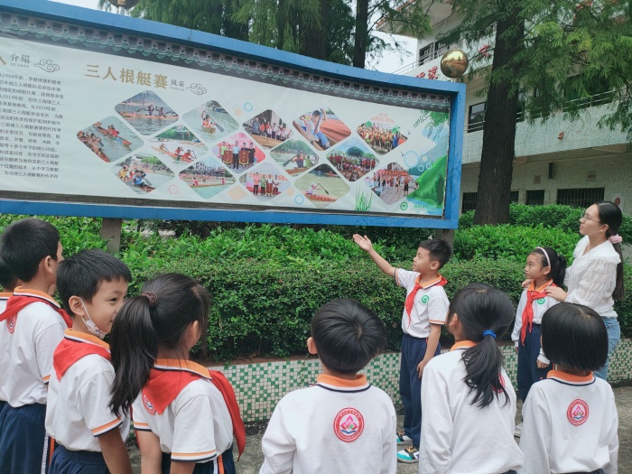 2020年10月,“三角鎮(zhèn)三人根艇賽”成功申報(bào)為中山市第八批市級(jí)非物質(zhì)文化遺產(chǎn)代表性項(xiàng)目名錄。為弘揚(yáng)優(yōu)秀傳統(tǒng)文化,促進(jìn)非物質(zhì)文化遺產(chǎn)的推廣和傳承,讓孩子們從小接受傳統(tǒng)文化的熏陶,感受傳統(tǒng)文化的無窮魅力,培養(yǎng)孩子們“非遺保護(hù)”的認(rèn)同感和愛國(guó)主義情感,2022年10月21日,三角鎮(zhèn)光明小學(xué)開展三人根艇“非遺宣講,少兒擔(dān)當(dāng)”小講解員培訓(xùn)活動(dòng)。