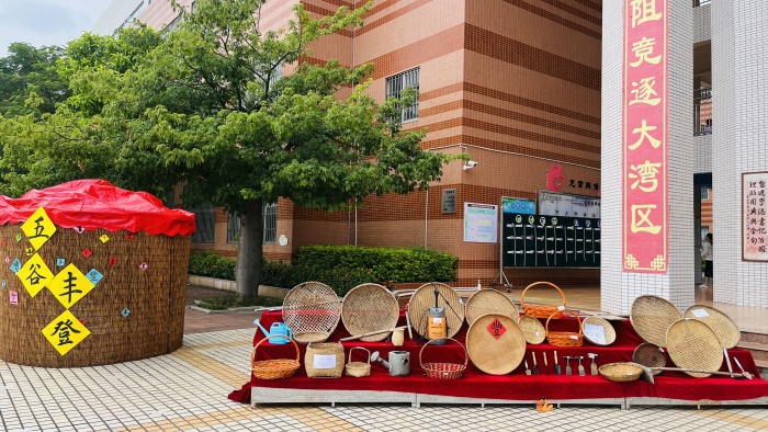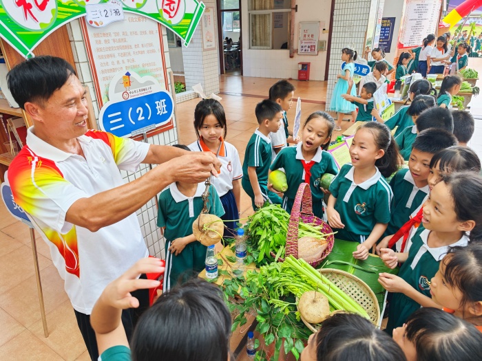 早在活動之前,各班主任發(fā)動大家分享提供各類蔬果菌菇及農(nóng)具等,學(xué)生和家長紛紛積極響應(yīng):簸箕、竹篩、竹籃、自家種的蔬果,還有用草繩扎好的芹菜。家長也不由感慨,“感覺回到小時候”。