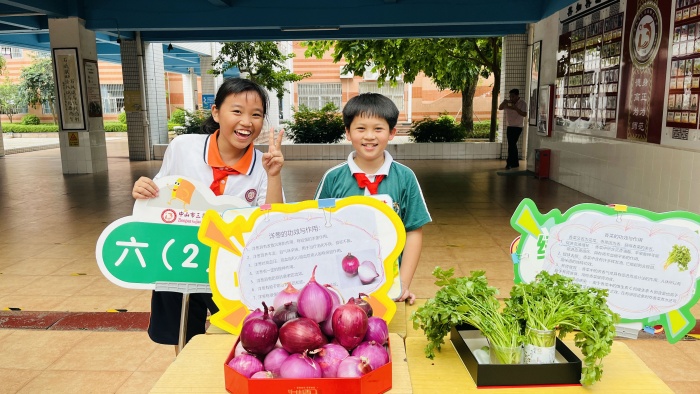 同學(xué)們的眼睛用于參觀,那么嘴巴除了驚嘆,還可以品一品“豐收”——部分班級精心準備的相關(guān)食物,如水果沙拉、玉米蘿卜蟲草花湯、粉葛馬蹄茅根清涼糖水等——嘗到嘴里,美在心里。