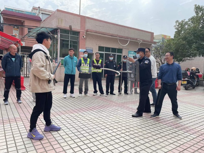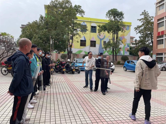 2月12日下午,三角鎮(zhèn)三角小學(xué)邀請沙欄派出所梁警官為學(xué)?!白钚?yīng)急單元”小組的成員開展培訓(xùn)及演練。梁警官首先了解了三角小學(xué)“最小應(yīng)急單元”小組的組成,并對小組成員的配對提出了寶貴的意見。隨后,梁警官為學(xué)校教職工介紹了長叉、盾牌、丁字棍的使用方法,并詳細(xì)示范。梁警官還向參加本次培訓(xùn)的教職工進(jìn)行了反恐防暴知識的專業(yè)培訓(xùn),從砍殺等常見暴恐事件的類型、特點(diǎn)、處理方式及歹徒心理入手,結(jié)合具體案例對反恐防暴的理論知識和要點(diǎn)進(jìn)行了講解,并與同行的警察同志一起現(xiàn)場展示。