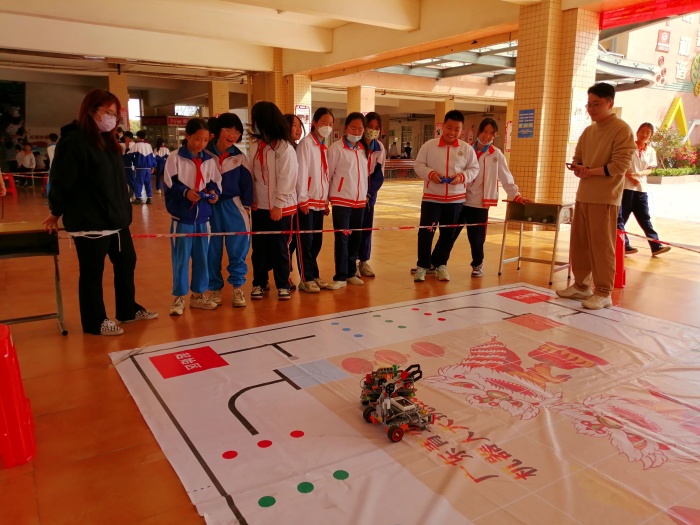 如果說設(shè)備展示區(qū)可以讓同學們大飽眼福,那么,機器人體驗區(qū)和模擬競賽區(qū)就更是校園科學愛好者的天堂了。在這里,同學們不僅可以體驗機器人的實際應(yīng)用,還可以使用遙控器控制機器人與現(xiàn)場工作人員模擬競賽。在一次次嘗試和比拼中,同學們摸索出了方法,靠著對科技的理解和領(lǐng)悟在歡樂中取得了不錯的成績。