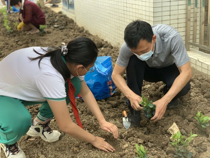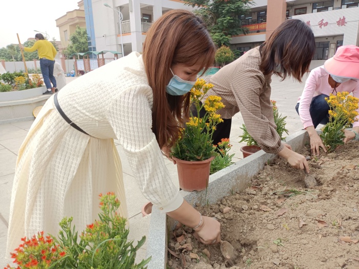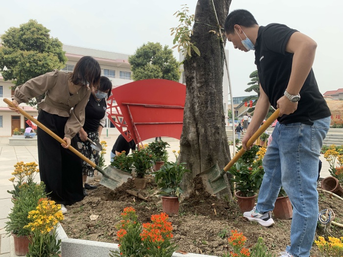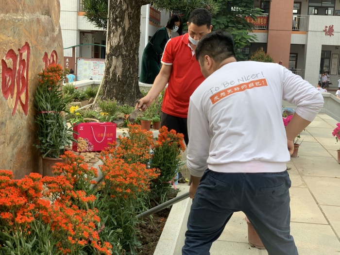 為了讓孩子們?cè)诔錆M花香的校園里快樂地學(xué)習(xí)與生活,捐贈(zèng)儀式后,全體老師及部分學(xué)生把在崔煥英校長的帶領(lǐng)下開啟了種花之旅。活動(dòng)現(xiàn)場(chǎng),全體師生一起干勁十足,有的負(fù)責(zé)挖坑,有的負(fù)責(zé)播撒花種,活動(dòng)井然有序,盡管她們臉上灑滿汗水、褲腿上沾滿泥土,但每個(gè)人臉上都掛著笑容,完全沉浸在美化環(huán)境帶來的愉悅之中。經(jīng)過近2小時(shí)辛苦勞作,老師和同學(xué)們精心規(guī)劃設(shè)計(jì),在不同的區(qū)域播種了不同的花種,為學(xué)校營造著美麗的風(fēng)景。