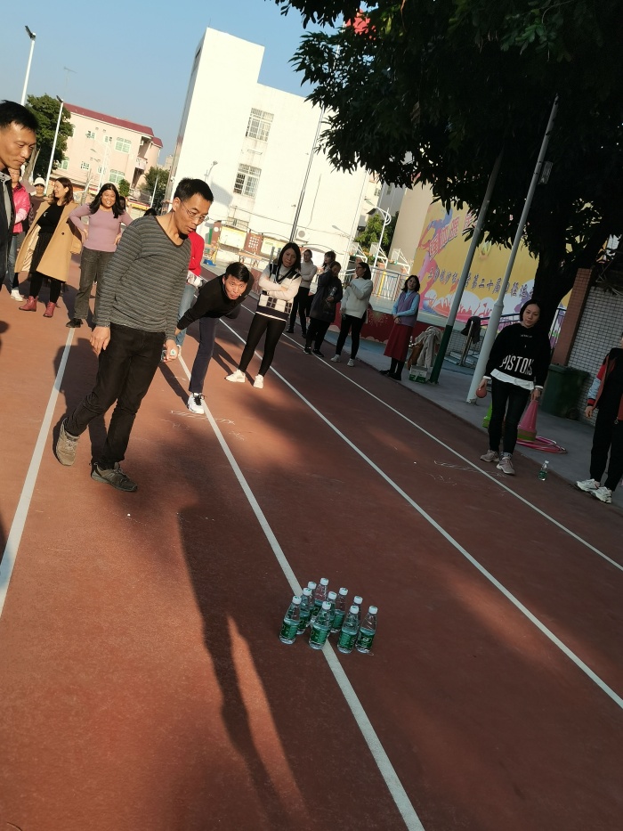本次趣味運動會共有三個活動:活動一“親親蜜蜜捏一捏”,活動二“甜甜蜜蜜送祝?!保顒尤伴_開心心玩游戲”。趣味運動會在“你幫我捶捶背、我?guī)湍隳竽蟛弊印钡幕顒又欣_序幕,接著老師們互相擁抱,并為對方送上溫馨的元旦祝福。玩游戲是本次趣味運動的重頭戲。共設(shè)有“愛心傳遞呼啦圈”“S型滾圈跑”、“雙人夾球跑”、“智投保齡球”四個比賽項目。每一個比賽項目都可以鍛煉教職工們動手動腦的能力,更多的是考驗大家團結(jié)協(xié)作的精神,這不單是智慧和體力的角逐,還是團結(jié)和協(xié)作的完美比拼。整個過程,參賽的每一個運動員、每一個團隊都牽動著在場老師的心弦。同呼吸,共命運,彼此加油、歡呼、喝彩,現(xiàn)場歡聲笑語此起彼伏,老師們互相鼓勵、互相幫助,發(fā)揚了團結(jié)協(xié)作的精神風(fēng)貌,將運動會氣氛推向高潮。運動場上不時響起一陣陣加油吶喊的笑聲與掌聲,每個老師的臉上都寫滿了喜悅和幸福。