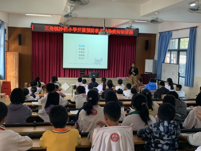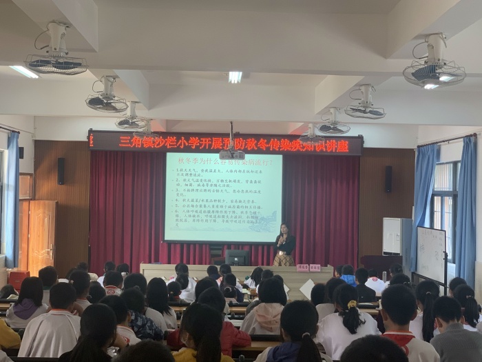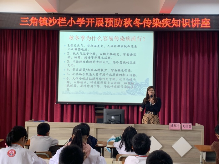 秋冬季是傳染病的多發(fā)季節(jié),一些病毒性傳染病也隨之而來,尤其是12月份正值冬季,天氣多變,時(shí)寒時(shí)暖,是麻疹、水痘、流感等呼吸道傳染病的高發(fā)期。學(xué)校是人員密集的地方,傳染性疾病極易傳播流行。因此學(xué)校牢固樹立“人人預(yù)防,個(gè)個(gè)健康”的理念,為預(yù)防傳染病的發(fā)生,保護(hù)全校師生的身心健康,也為了增強(qiáng)全校師生對預(yù)防傳染疾病的關(guān)注和重視。為了增強(qiáng)師生對秋季傳染病的預(yù)防保健意識,讓學(xué)生遠(yuǎn)離傳染病,健康快樂地成長,12月13日下午,沙欄小學(xué)舉辦了一次秋冬季傳染病預(yù)防知識講座。