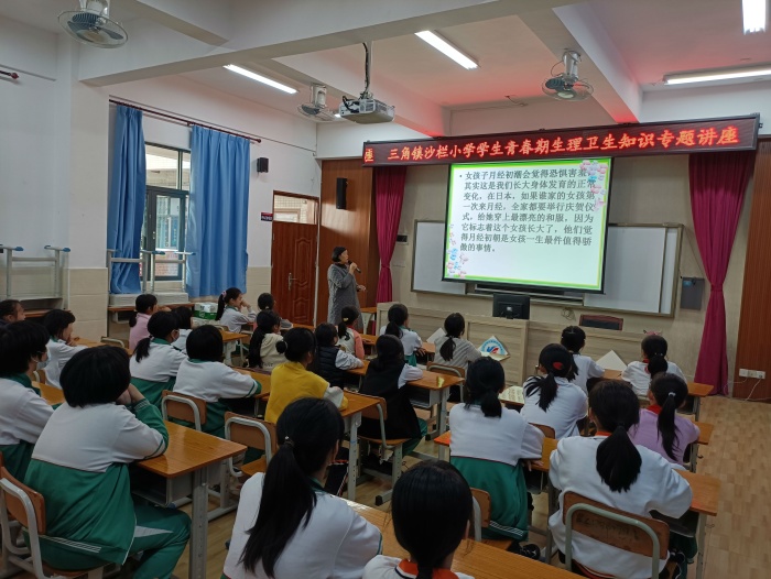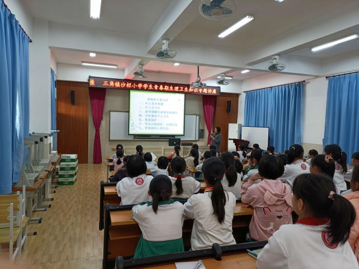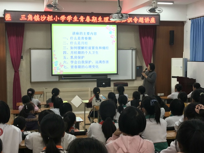 為了使學生更清晰地了解青春期的生理、心理知識,掌握最基本的青春期健康衛(wèi)生常識,養(yǎng)成良好的衛(wèi)生習慣,三角鎮(zhèn)沙欄小學在11月26上午組織五年級女生開展了主題為“我是女生”的生理衛(wèi)生知識講座。