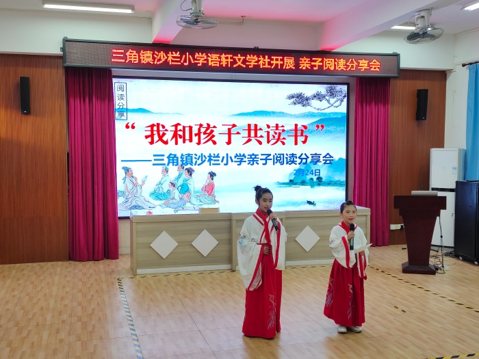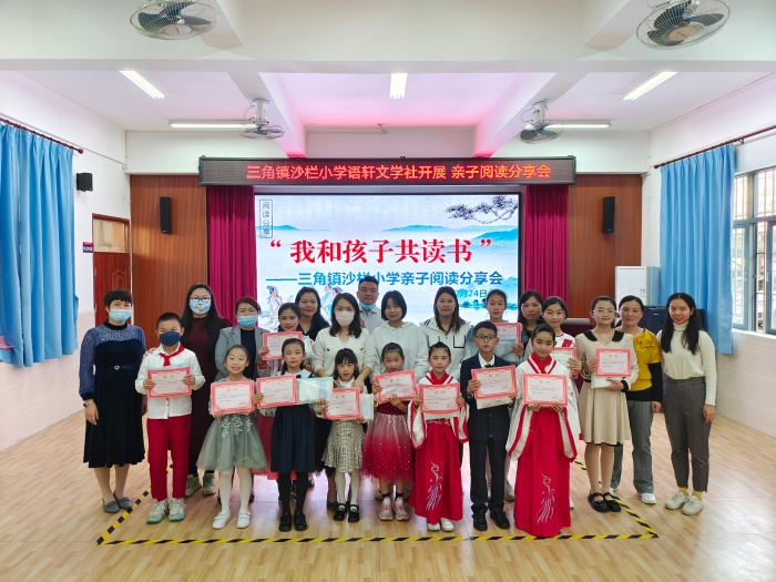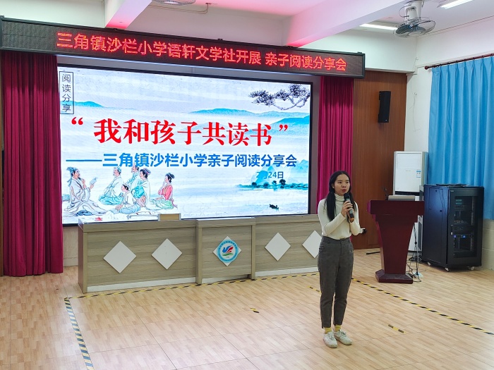 三角鎮(zhèn)沙欄小學作為三角鎮(zhèn)親子閱讀體驗基地,為進一步做好推進全國規(guī)范化家長學校試驗區(qū)推進工作,營造家庭好讀書、讀好書、書讀好的良好氛圍,發(fā)揮家庭親子閱讀在傳遞良好家風、促進學生健康成長中的重要作用,推進全民閱讀,2月24日下午,三角鎮(zhèn)沙欄小學巾幗筑夢隊聯(lián)合語軒文學社組織開展“我和孩子共讀書”親子閱讀分享會。