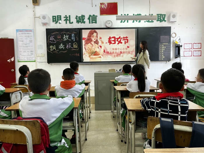 芬芳三月,桃花夭夭。為弘揚(yáng)中華民族傳統(tǒng)美德,培養(yǎng)學(xué)生關(guān)心他人、尊敬父母、孝敬長輩,心懷感恩之心,在“三八”國際婦女節(jié)來臨之際,三角鎮(zhèn)中心小學(xué)開展了“三八”國際婦女節(jié)系列主題教育活動(dòng)。
