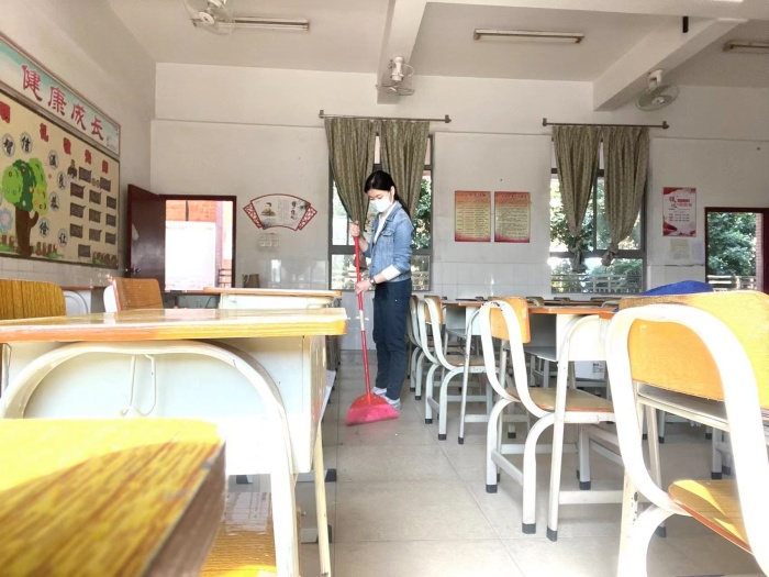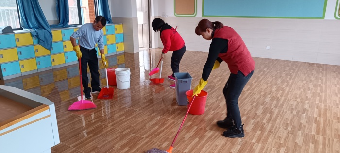 活動(dòng)中,黨員教師沖鋒在前,全體老師緊隨其后。老師們紛紛拿起清潔工具,掃地、打水、拖地、擦課桌椅、擦窗戶黑板、擦墻壁臟跡、整理圖書角、消毒課室及公共區(qū)域、滅蚊除害、沖洗地板……大家分工明確,不放過(guò)任何一個(gè)衛(wèi)生死角。盡管有的教室布滿灰塵,大家也都沒(méi)有停下手中的勞動(dòng),就像打掃自己的家一樣用心。教室里、樓道內(nèi)都留下了老師們最美的身影。
