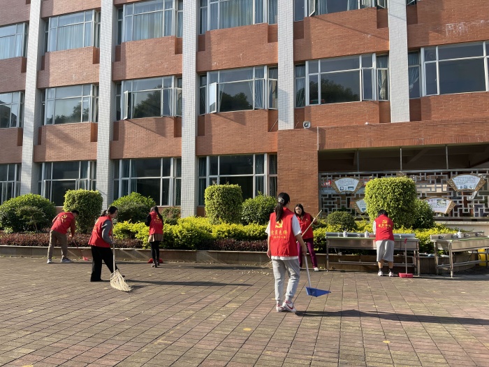 清潔活動(dòng)中,教師們共同勞動(dòng),為校園的美麗增添一份光彩。在互幫互助中,他們完成了校園的清掃,煥然一新。