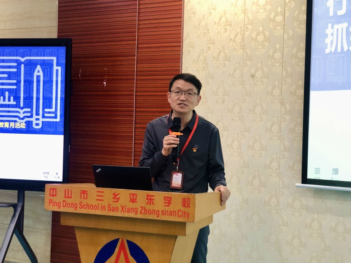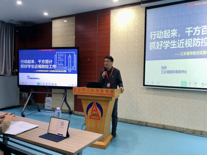 為進(jìn)一步加強(qiáng)學(xué)生視力保護(hù)工作,有效防治和干預(yù)近視。3 月 20 日, 責(zé)任督學(xué)、 中山市學(xué)校健康教育百師宣講團(tuán)副團(tuán)長(zhǎng)劉杰校長(zhǎng)到平東學(xué)校作了一場(chǎng)精彩的近視防控專題講座。講座由任小華副校長(zhǎng)主持,全體教職工參加了培訓(xùn)。