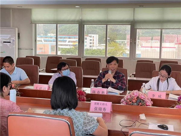 接著,課題主持人白石環(huán)小學(xué)張錦秀老師向?qū)<医M進(jìn)行課題研究匯報(bào)。她詳細(xì)介紹了課題研究的背景、研究的目標(biāo)與內(nèi)容、研究的過程與方法、課題的成果與成效。歷經(jīng)5年,全體課題組成員堅(jiān)持研究,目前,創(chuàng)新、詩意的課堂模式已經(jīng)覆蓋全校,學(xué)生愛讀詩,樂創(chuàng)作,形成了良好的詩歌教學(xué)氛圍。該課題的研究成果突出,教師教學(xué)能力顯著提高,學(xué)校教師在省、市、鎮(zhèn)各級(jí)比賽活動(dòng)中頻獲佳績(jī);學(xué)生兒童詩創(chuàng)作水平明顯提高,每年參加粵港澳大灣區(qū)小學(xué)生詩歌季詩歌創(chuàng)作比賽都有接近20名學(xué)生獲獎(jiǎng),課文改寫兒童詩的教學(xué)模式也獲得專家、同行的高度認(rèn)可。