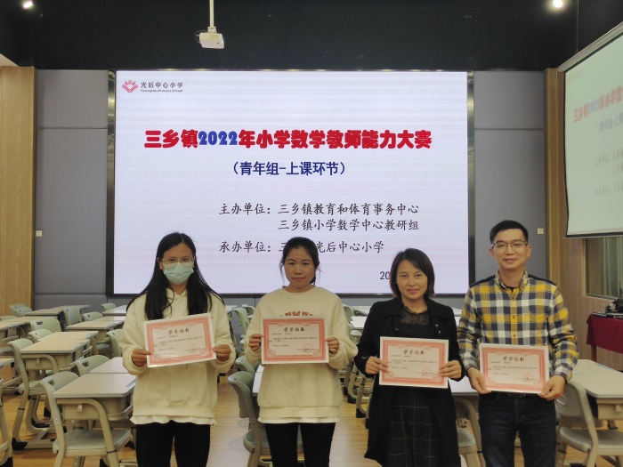 此次比賽,平嵐小學(xué)胡雨嬋老師、光后中心小學(xué)翁潔、大布小學(xué)鄒曉蘭老師榮獲本次大賽一等獎(jiǎng);鴉崗小學(xué)陳燕惠老師、載德小學(xué)趙立宇老師、新圩小學(xué)左陽(yáng)洋老師、白石環(huán)小學(xué)石文婷老師榮獲二等獎(jiǎng);雍陌小學(xué)鄭偉霞老師、東華學(xué)校劉丹老師、新民學(xué)校顏柳老師、南峰學(xué)校李婷老師、平東學(xué)校文晨栩老師榮獲三等獎(jiǎng)。三鄉(xiāng)鎮(zhèn)教體文旅局教工黨總支副書(shū)記李橋毅、三鄉(xiāng)鎮(zhèn)教體文旅局教研員蔡新安、三鄉(xiāng)鎮(zhèn)小學(xué)數(shù)學(xué)中心教研組組長(zhǎng)蔡啟民分別為獲獎(jiǎng)選手頒發(fā)榮譽(yù)證書(shū),三鄉(xiāng)鎮(zhèn)小學(xué)數(shù)學(xué)中心教研組組長(zhǎng)蔡啟民主任宣布大布小學(xué)鄒曉蘭老師將代表三鄉(xiāng)鎮(zhèn)參加中山市小學(xué)數(shù)學(xué)青年教師能力大賽。