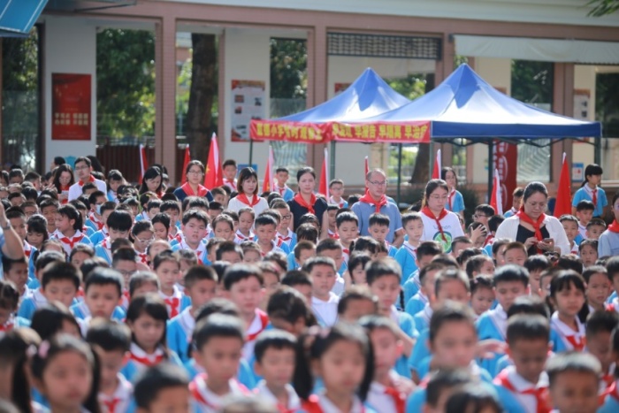 看,校門口的大隊(duì)旗迎風(fēng)招展,學(xué)校大隊(duì)委員們在校門口歡迎每位隊(duì)員,進(jìn)校園的隊(duì)員們紛紛向隊(duì)旗敬個禮,一個隊(duì)禮,一份光榮,滿滿的儀式感,更加堅(jiān)定他們時刻準(zhǔn)備著為共產(chǎn)主義奮斗的決心。
