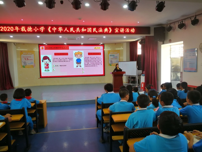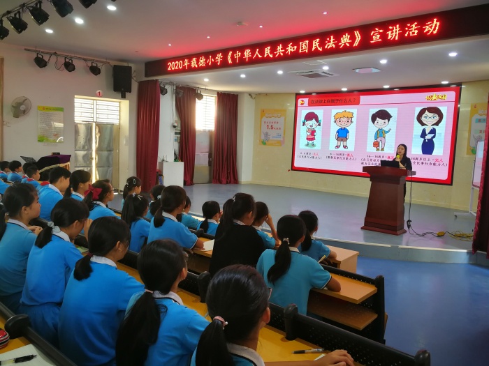 為進(jìn)一步增強(qiáng)青少年學(xué)生的法治安全意識,幫助學(xué)生樹立良好的法治觀念,傳遞社會正能量,弘揚(yáng)社會新風(fēng)尚,10月27日下午,廣東銘興律師事務(wù)所王香豐律師給中山市三鄉(xiāng)鎮(zhèn)載德小學(xué)學(xué)生上了一節(jié)民法典知識專題課。