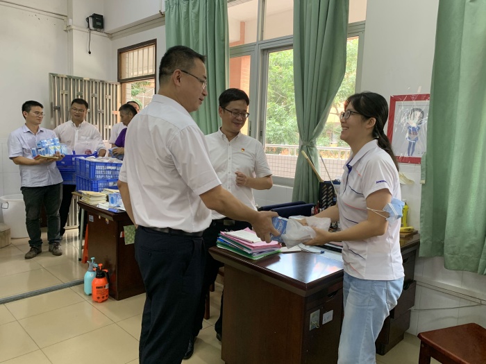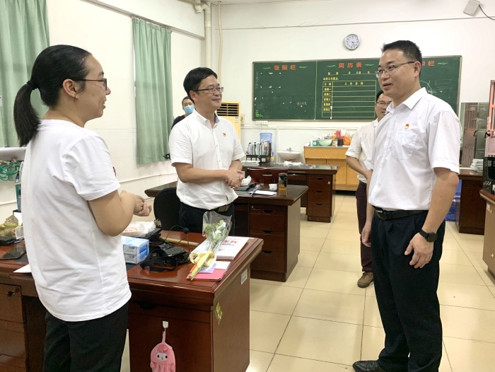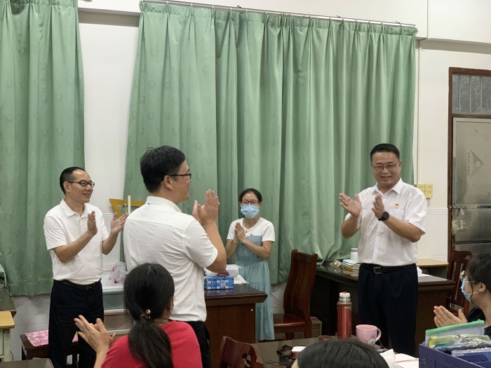 時維九月,碩果盈枝。2020年9月10日下午,沙溪鎮(zhèn)黨委副書記、鎮(zhèn)長徐業(yè)恒,黨委委員黎炳堅、黨政辦主任彭泳勇、教育指導中心主任汪鋒一行蒞臨沙溪中學開展走訪慰問活動,向勤勉耕耘在教育教學一線的全體教職工致以節(jié)日的祝福和誠摯的問候。