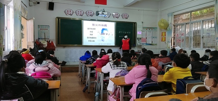 上午八時,602中隊的廣播員莊冬榆隊員利用學校的紅領巾廣播站,作了以“春季傳染病預防”為主題的講話,她告訴隊員們各種疾病的引發(fā)都是從不注重衛(wèi)生習慣,不愛洗手,飲食不注意,隨手亂扔垃圾等小細節(jié)而造成的。因此,講衛(wèi)生,防疾病應從自身做起,從身邊的小事做起。在紅領巾廣播播報結(jié)束后,輔導員老師利用隊會課開展《春季傳染病預防》專題科學知識的宣傳普及,告訴孩子們春天為什么容易造成傳染病流行,常見的春季傳染病有哪些,以及一些健康小知識。輔導員們從傳染病的病因、臨床表現(xiàn)、基本趨勢、傳播途徑以及預防知識,指導隊員們要對傳染病樹立正確思想認識,從小處著手、從細節(jié)出發(fā)預防傳播,共同筑牢預防傳染病的防線,對春季傳染病做好早發(fā)現(xiàn)、早隔離、早診斷、早治療。除此之外,學校少先隊大隊部出臺衛(wèi)生考核細則,把環(huán)境衛(wèi)生工作列入學校的形象工程,加強學校環(huán)境衛(wèi)生工作的監(jiān)督,整治臟、亂、差等現(xiàn)象,創(chuàng)造一個良好的育人環(huán)境。