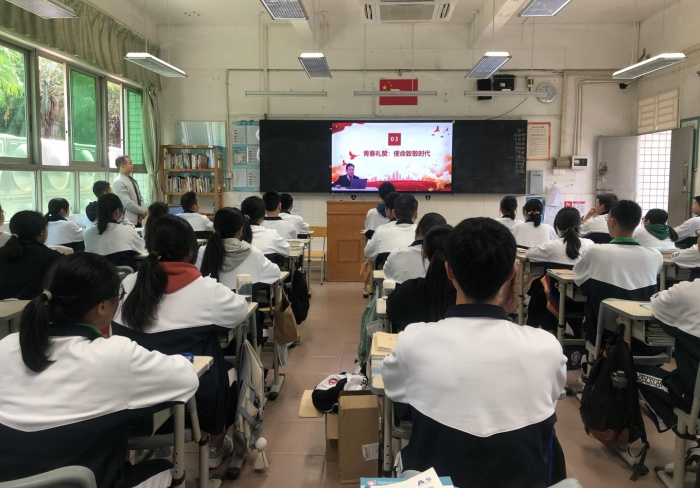 原本師生應該聚在一起,共同站在旗桿下,注視著五星紅旗緩緩升起……然而,因為疫情,沙溪理工學校全體師生通過線上觀看了整個線上開學典禮過程,內(nèi)容包括升旗儀式、觀看防疫要求視頻、校長寄語等環(huán)節(jié)。
