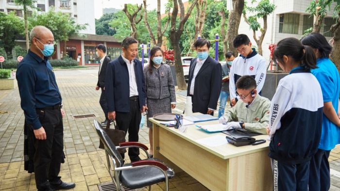 10月19日,中山市教育工委委員、市教育和體育局黨組成員、副局長姜術(shù)俊一行到中山市溪理工學(xué)校進行調(diào)研,深入了解學(xué)校發(fā)展情況,想方設(shè)法共同解決學(xué)校在高水平、高質(zhì)量發(fā)展中遇到的困難。市教體局四級調(diào)研員黃慶財,高職終科科長湯偉勛,安全保衛(wèi)科副科長賴欽輝一起陪同調(diào)研。學(xué)校黨委副書記、副校長盧永輝,副校長葉樹人、楊廷樺、郭冬冬等行政陪同。