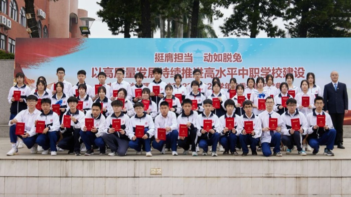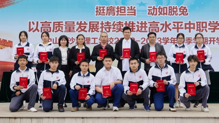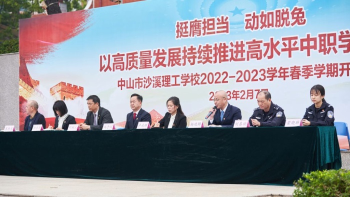 學(xué)校黨委書(shū)記馮子川表示,在過(guò)去一年,沙溪理工學(xué)子在職業(yè)院校技能競(jìng)賽中,大放光彩,斬獲多項(xiàng)佳績(jī),其中省賽一等獎(jiǎng)數(shù)量居全省第三、中山市第一名,過(guò)去的成績(jī)是鞭策我們前進(jìn)的動(dòng)力,在新的起點(diǎn),全體師生要緊起來(lái)、動(dòng)起來(lái)、干起來(lái),不懈怠,跑好開(kāi)局“第一棒”,務(wù)求“開(kāi)門(mén)穩(wěn)”“開(kāi)門(mén)好”“開(kāi)門(mén)紅”,以開(kāi)局精彩帶動(dòng)全年出彩,為學(xué)校高質(zhì)量發(fā)展增添強(qiáng)大動(dòng)力。他指出,目前從黨中央到省市高度重視和大力支持職業(yè)教育的發(fā)展,全體師生要珍惜我們工作學(xué)習(xí)的好時(shí)代,要感恩國(guó)家對(duì)職業(yè)教育的厚愛(ài)。同時(shí),他寄語(yǔ)同學(xué)們?cè)谖磥?lái)的道路上多一點(diǎn)責(zé)任感,多一份擔(dān)當(dāng),多一些感恩,練就一身過(guò)硬的本領(lǐng),不忘初心,勇往直前,與祖國(guó)共奮進(jìn)。