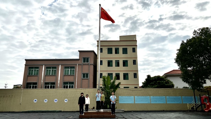 早上,全體師生迎著春日的微風(fēng),精神飽滿、莊嚴(yán)肅穆地在操場(chǎng)上向祖國(guó)致敬!國(guó)旗護(hù)衛(wèi)隊(duì)的少先隊(duì)員們堅(jiān)挺筆直、振奮揮臂,鮮艷的五星紅旗冉冉升起。國(guó)旗下,全體師生莊嚴(yán)肅靜,向國(guó)旗行注目禮。