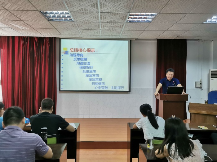 吳偉標(biāo)校長在活動中首先明確了此次培訓(xùn)的目的和意義,對教師們寄予了衷心祝愿和殷切期望,希望教師們學(xué)會系統(tǒng)思考,做到胸懷大局、守土有責(zé),互補(bǔ)互助,促進(jìn)自我完善,促進(jìn)學(xué)校和教師個體內(nèi)涵發(fā)展。
