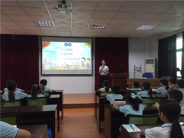 首先,學(xué)校組織五六年級學(xué)生到報告廳參加禁毒教育講座。禁毒社工詳細(xì)地介紹了什么是毒品,毒品的種類、特征以及毒品的危害。同時結(jié)合生活中真實的案例,用通俗易懂的語言向?qū)W生講解禁毒法律法規(guī)和吸食毒品的嚴(yán)重不良后果,以血的教訓(xùn)、鐵的事實,告誡學(xué)生們認(rèn)清危害,樹立自我保護(hù)意識。課堂最后,社工還進(jìn)行了情景演練互動,使同學(xué)們認(rèn)識到在社會生活中,要時時提高警惕,千萬不以好奇為由僥幸去嘗試,更不能受誘惑尋求刺激,面對毒品要堅決抵制,才不至于踏上違法犯罪的道路。