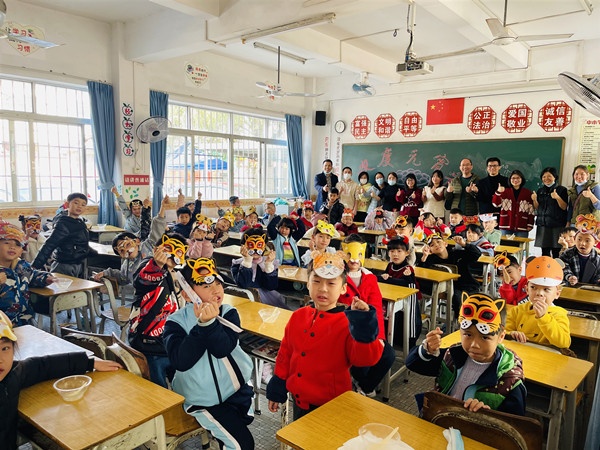 元宵節(jié)是中國(guó)的傳統(tǒng)節(jié)日之一,古人稱“夜”為“宵”,稱正月十五為“元宵節(jié)”。按我們民間傳統(tǒng),在一元復(fù)始,大地回春的節(jié)日,天上明月高懸,地上彩燈萬(wàn)盞;人們觀燈,猜燈謎,吃湯圓。為了增強(qiáng)節(jié)日氣氛,傳承中華傳統(tǒng)文化,營(yíng)造歡樂(lè)的節(jié)日氛圍,樂(lè)群小學(xué)的孩子們?cè)诎嗉?jí)的組織下“穿新衣、戴虎頭飾、做湯圓”,參加主題為“金虎迎春到 ,歡樂(lè)鬧元宵”的節(jié)日活動(dòng)。