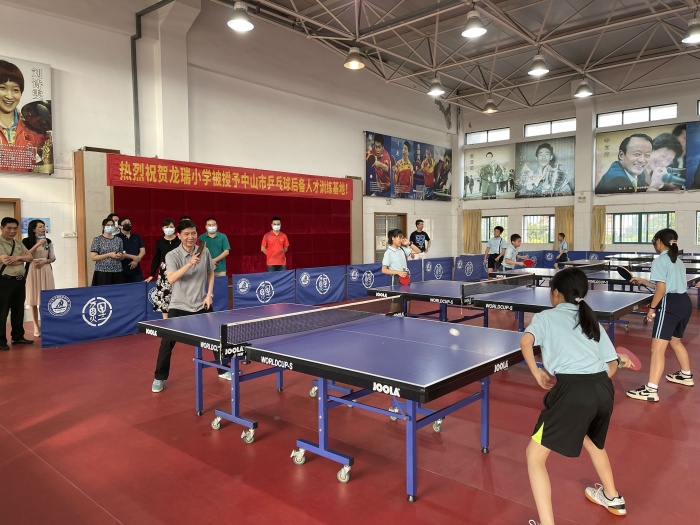 最后,進(jìn)行了簡單而隆重的授牌儀式,市教體局社會(huì)體育科科長嚴(yán)慶中、中山乒協(xié)會(huì)長李維駒為龍瑞小學(xué)授予中山市乒乓球后備人才培養(yǎng)基地牌匾,隨后,與會(huì)領(lǐng)導(dǎo)和嘉賓移步到乒乓球館指導(dǎo)龍瑞小學(xué)乒乓球隊(duì)訓(xùn)練。