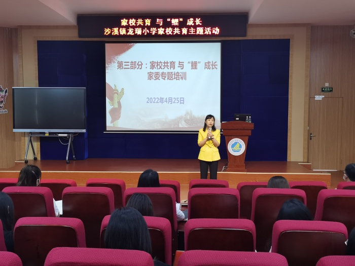 家庭教育是教育的起點和基點,也是教育的主戰(zhàn)場。家長擁有科學的教育方法,對孩子的成長至關重要。為廣泛傳播家庭教育科學知識,指導廣大家長科學教子,增進家校聯(lián)系,達到家校攜手共育的目的,龍瑞小學結合家校共育實踐基地學校的中心工作,于4月25日下午在學校多功能廳舉行了主題為“家校共育 助鯉成長”的家校共育志愿服務隊成立儀式暨家委專題培訓。